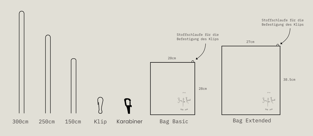 - Die 250cm Kordel für durchschnittlich grosse Menschen.