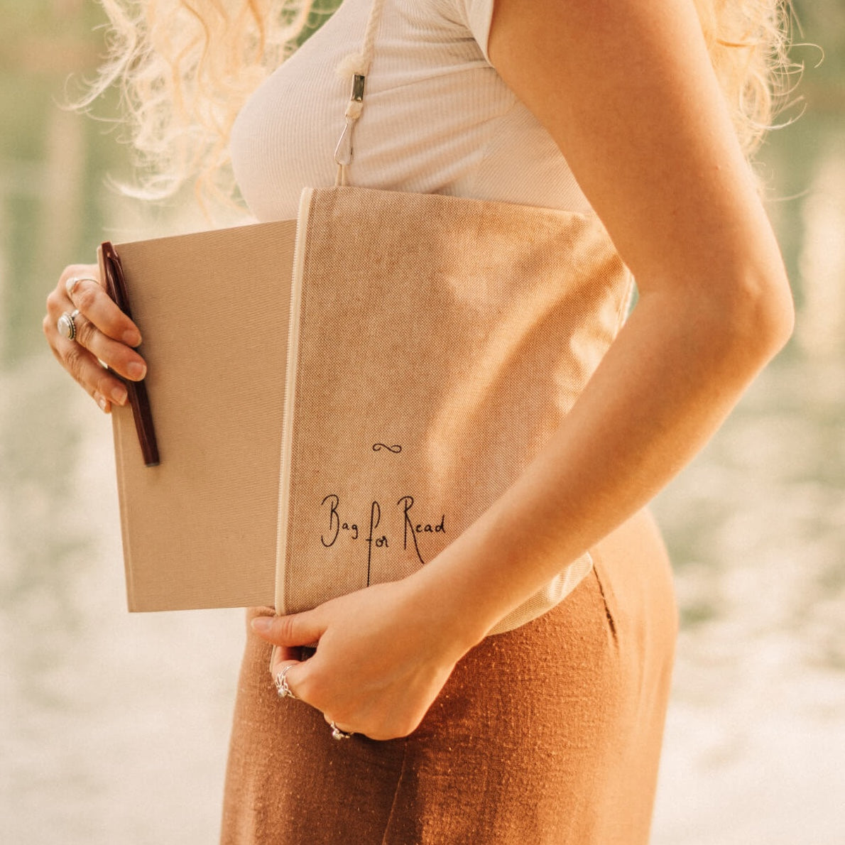 Unser einzigartiger Tragemechanismus ermöglicht es dir, den Bag unter dem Arm zu tragen - eine Erfindung, die ein neues Maß an Sicherheit und Komfort bietet. Mit einer Kordel, die du über den Rücken ziehst, bleibt dein Bag sicher und dennoch bequem erreichbar, während deine Hände frei bleiben. Egal, ob du dich für ein gemütliches Leseerlebnis entscheidest, von Meeting zu Meeting rennst, an einer Tanzparty bist oder deine Abenteuerlust weckst, Bag for Read begleitet dich mit Leichtigkeit und Stil auf jedem Schritt deiner Reise.