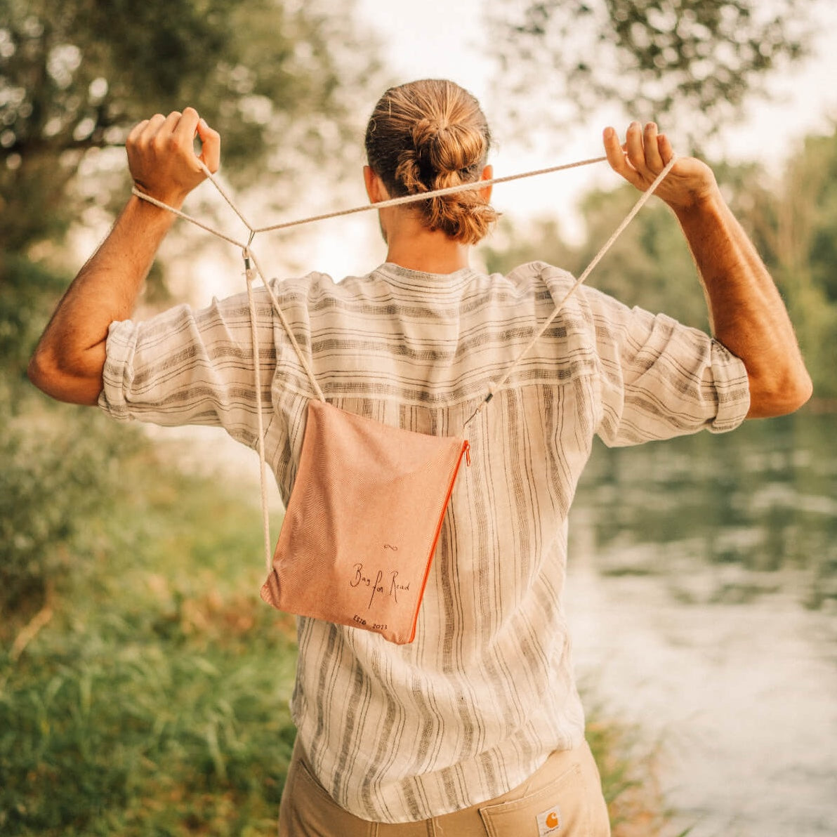 Falls nötig kannst du einen Knoten im Bag machen um die Länge der Kordel auf deinen Körper anzupassen.